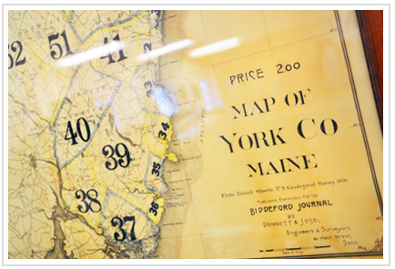 During the many years this office has been in continuous operation, we have accumulated thousands of plans and other survey records. We have the complete survey records of W. S. Dennett, Dennett & Jose, Dennett & Libby, R. W. Libby, Libby & Johnson, and Libby & Dow. We also have survey records of George Harmon and Enoch Jordan. We have what is perhaps the largest privately owned collection of land records in southern Maine.
